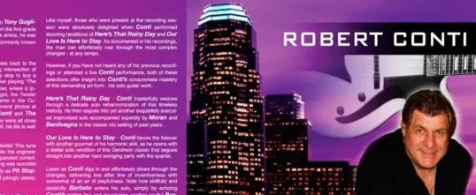He possesses incredible technical chops  that ALWAYS deliver great solo lines. He is an encyclopedia of harmonic invention who effortlessly performs lyrical, satisfying chord solos. But, what is not often publicly stated about Conti is that he is a superb accompanist and “comper.” His support of others is sensitive, never obtrusive, yet very inventive and refreshing. The CD is a textbook about how jazz guitar comping is done. And finally, like the great Art Blakey, Conti is a wonderful bandleader who coaxes the absolute best from his fellow musicians. All of these reasons add up to one conclusion: you need to hear this CD!